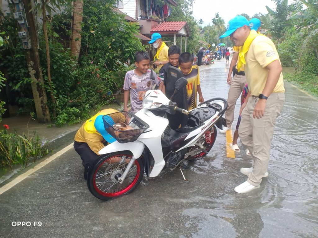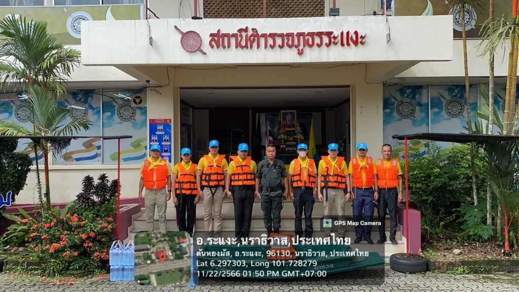ซึ่งสถานการณ์น้ำในพื้นที่ฯ ปริมาณน้ำเพิ่มขึ้น ไหลแรง ถนนบ้างจุดพัง พร้อมนี้ได้แจ้งเตือน เฝ้าระวังน้ำท่วมฉับพลัน น้ำป่าไหลหลากจากฝนตกต่อเนื่อง ทั้งนี้ได้มอบน้ำดื่มช่วยเหลือเบื้องต้น ณ พื้นที่รับผิดชอบ สภ.ระแงะ บ้านตันหยงมัสเก่า ม.1 และบ้านวัดร่อน ม.2 ต.ตันหยงมัส อ.ระแงะ จว.นราธิวาส