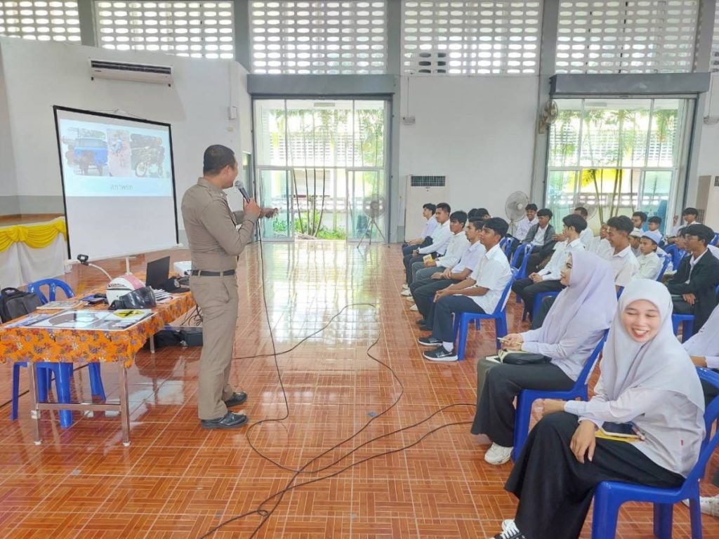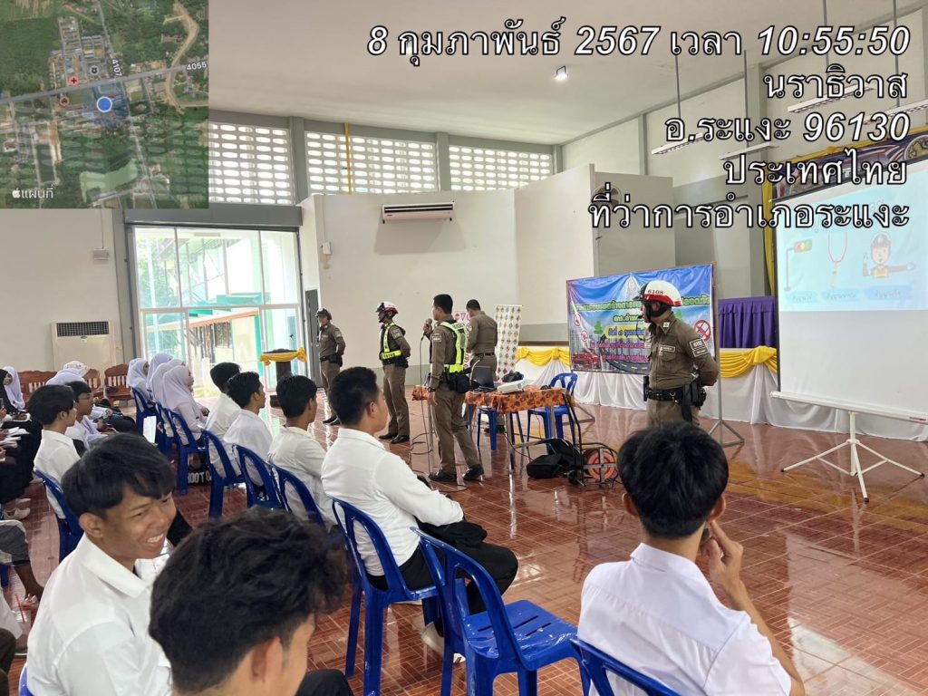 สวป.สภ.ระแงะ (ระแงะ611) ร.ต.ต.ธีระพงศ์ แก้วชำนาญ รอง สว.จร.สภ.ระแงะ พร้อมกำลังข่ายจราจร , ชุดมวลชนสัมพันธ์ ให้ความรู้ ความเข้าใจเกี่ยวกับกฎหมายจราจรเบื้องต้น และพ.ร.บ.คุ้มครองอุบัติเหตุ ในโครงการอบรมสร้างการรับรู้สถานศึกษาปลอดภัย สกร.อำเภอระแงะ ณ หอประชุมที่ว่าการอำเภอระแงะ ต.ตันหยงมัส อ.ระแงะ จว.นราธิวาส