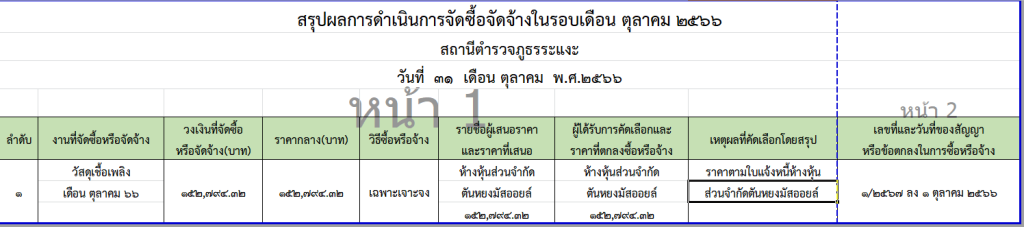 O15 สรุปผลการจัดซื้อจัดจ้างรายเดือน