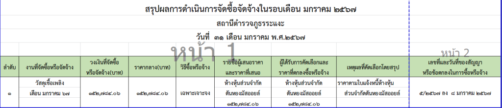 สรุปผลการดำเนินการจัดซื้อจัดจ้างในรอบเดือน ม.ค.67